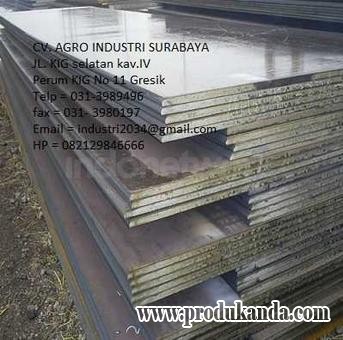 ' AGRO INDUSTRI SURABAYA '' -Perusahaan kami MENJUALl / mensuplay segala macam kebutuhan industri terutama PLAT BAJA BESI,baik untuk industri maupun kontruksi, rumahan, sesuai yang anda butuhkan. Kegunaan ; Sebagai bahan pembuatan Tangki, peti kemas, bak truk, pagar, tangga, dan lain lain.APLIKASI: - PELAT KAPAL ( SHIP BUILDING) SPEC: BVB, KIB, NKA, 36GLB, LRA, DNV, NVA36, RINAAH36 - BOILER, PRESSURE VESSEL & TABUNG LPG SPEC: ASTM516G70, SG2957 - GENERAL STRUCTURE SPEC: ENS355, SS540, ST523, BSENP265NB, ASHA350, CSA350W - BAJA TAHAN KOROSI CUACA & CONTAINER SPEC: SPAH - SOURGAS / OIL & PIPE GAS SPEC: API5LX80, API5CT - AUTOMOTIVE / CHASIS, INNER & OUTER PART SPEC: SPHE, SAPH440, HSAPH540 - GENERAL PIPE & TUBES SPEC: SPHT4, STKR, ASTM252 - PLAT BORDES / CHEQUERED PLATE UKURAN: TEBAL : 1.80 MM ~ 25.00 MM LEBAR : 650 MM ~ 2000 MM TERJAMIN BERMUTU TINGGI DAN PRESISI TINGGI, SESUAI STANDART COLD ROLLED COILS / SHEETS APLIKASI: AUTOMOTIVE, HOME, OFFICE & ELEKTRICAL APPLIANCE, ENAMEL WARE, TIN MILL BLACK PLATE, PIPE & TUBE, DRUMS SPESIFIKASI STANDART: SPCC-SD , SPCC-UN , SPCCT-SD, CPCE-SD, SPCE-EN , SPCG-SD , ISO 5001 ~ 93 , ASTM A625M-92. Jika anda berminat hubungi kami segera akan kami berikan harga yang kompetitif.